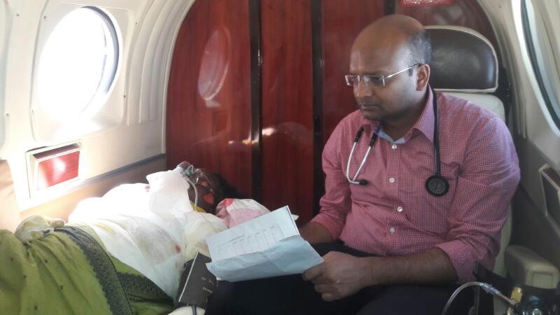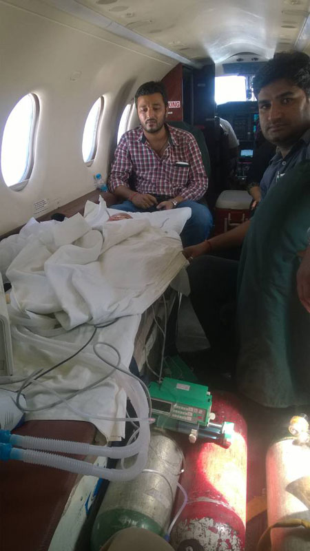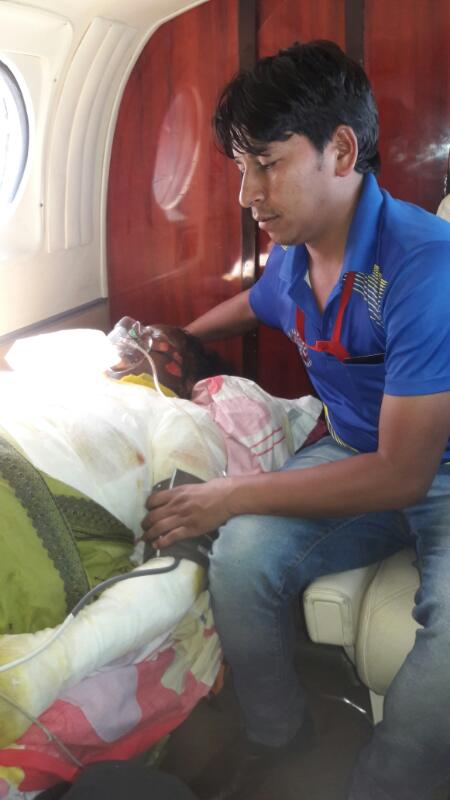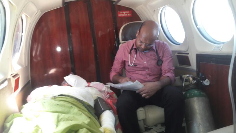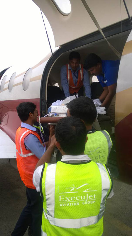 Step 4: The patient is made comfortable inside the aircraft on stretcher.