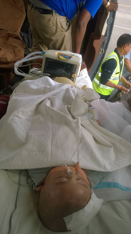 Step 1: Baby can be seen on the trolley of Ambulance. All life support system which includes ventilator, monitor and syringe pumps are attached with baby and are continuously working.