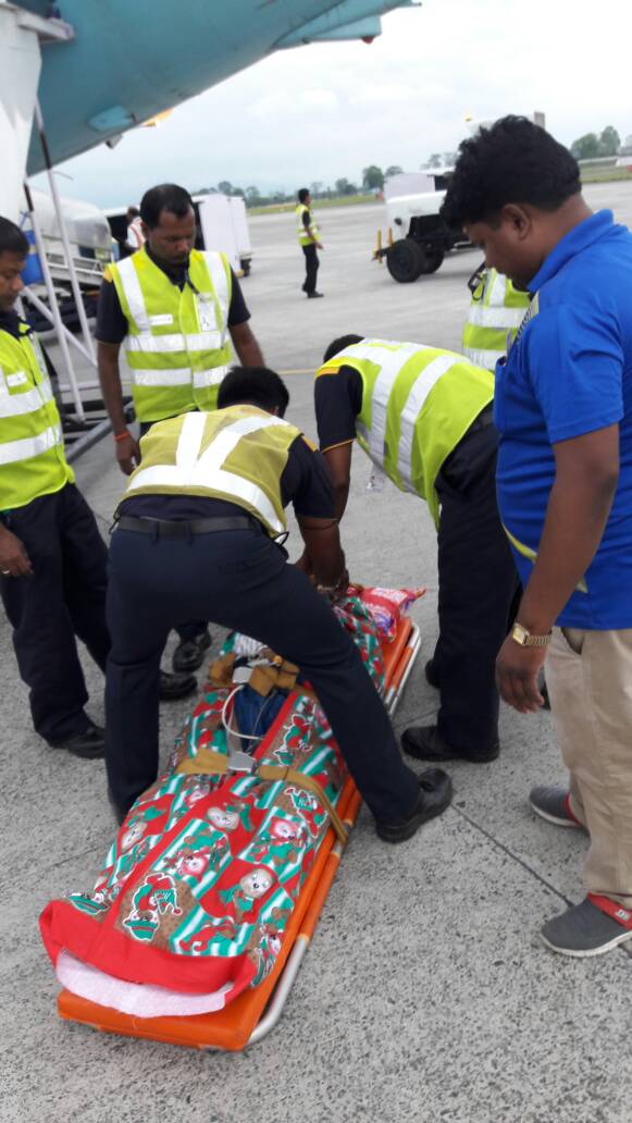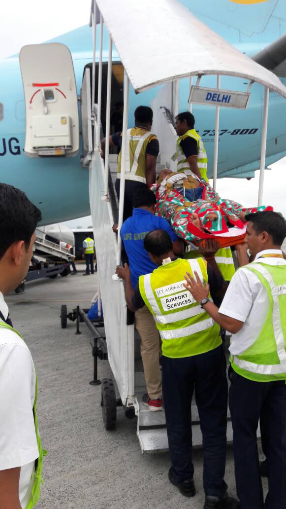 Step 2: Then the patient is taken inside the aircraft by stairs. Sometimes Ambu-Lift is also used whenever it is available.