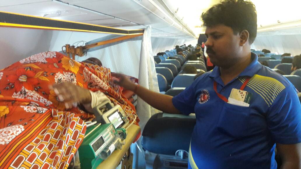 Step 4: The patient is made comfortable inside the aircraft on stretcher.